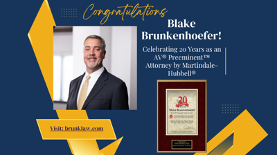 Blake Brunkenhoefer Celebrates 20 Years of AV® Preeminent™ Rating by Martindale-Hubbell